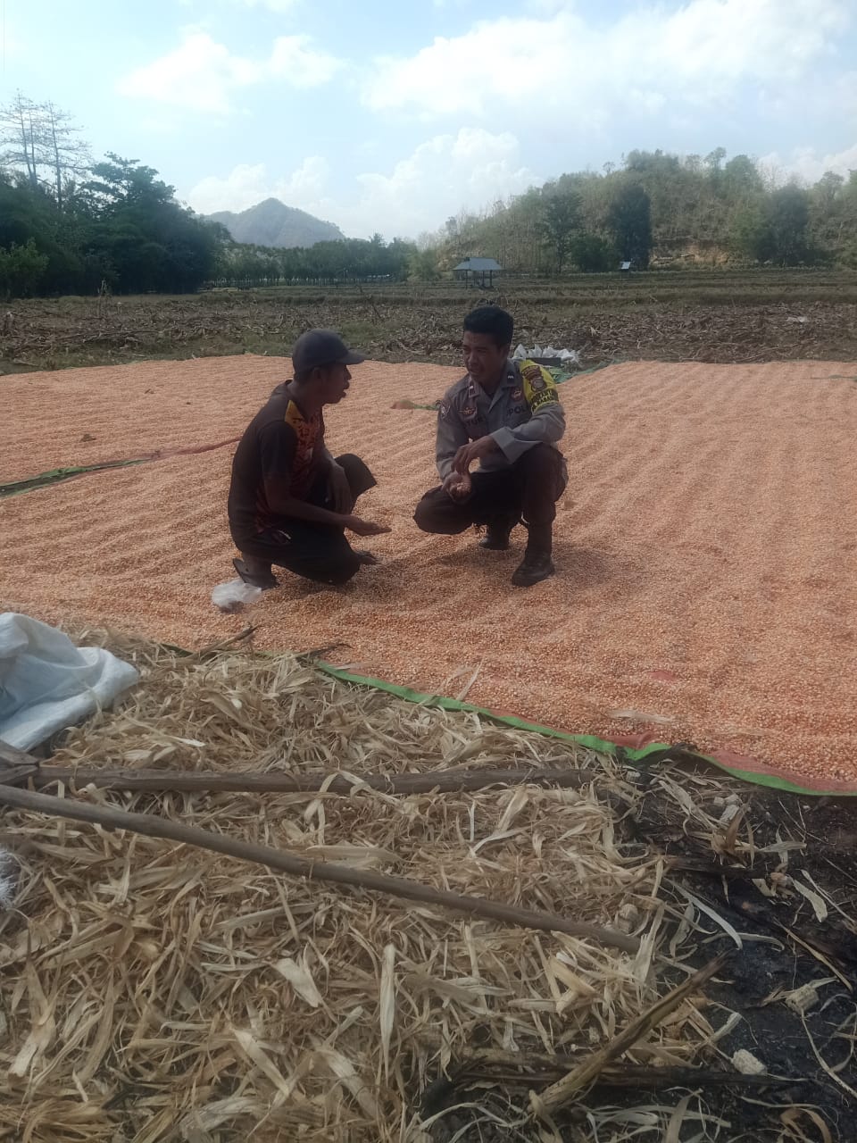 Dalam kegiatan tersebut, Bhabinkamtibmas memantau secara langsung aktivitas masyarakat yang sedang memanen dan menjemur jagung milik warga bernama Usman. Kegiatan ini merupakan bagian dari upaya Polri melalui fungsi Bhabinkamtibmas untuk memastikan hasil panen masyarakat berjalan lancar sekaligus memberi dukungan moral bagi para petani.