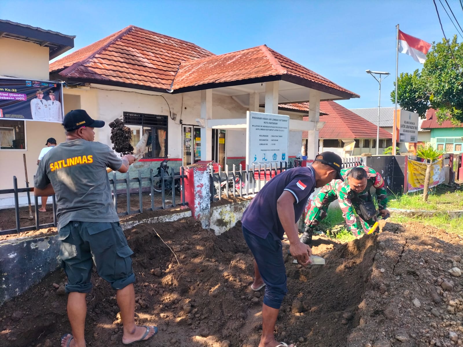 Mataram, NTB – Semangat kebersamaan dan kepedulian terhadap lingkungan kembali ditunjukkan oleh Bintara Pembina Desa (Babinsa) Pagutan Timur, Serma Andre Pradana Putra, yang bersama Lurah Pagutan Timur beserta staf dan perangkat kelurahan melaksanakan kegiatan gotong royong pembersihan serta perataan tanah urug di sekitar Kantor Lurah Pagutan Timur, Kecamatan Mataram, Kota Mataram, Sabtu (20/12/2025).
